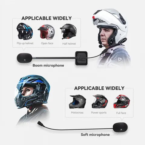 For full-face helmets, use a wired microphone positioned in front of the mouth.